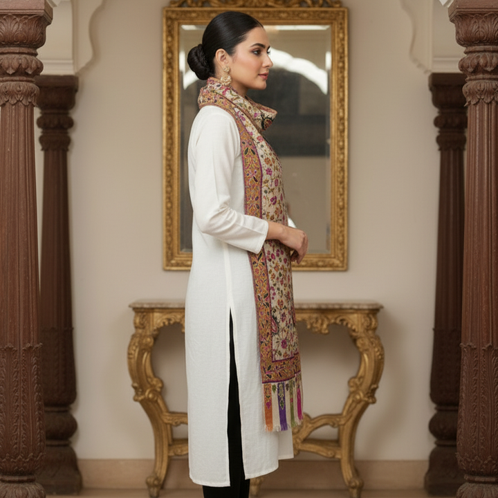 These beautiful qalamkar shawls are filled with amazing colours and embroidery from brim to the core. Using our latest Reel Embroidery technique, intricate Qalamkari patterns are drawn upon the cashmere shawls.
