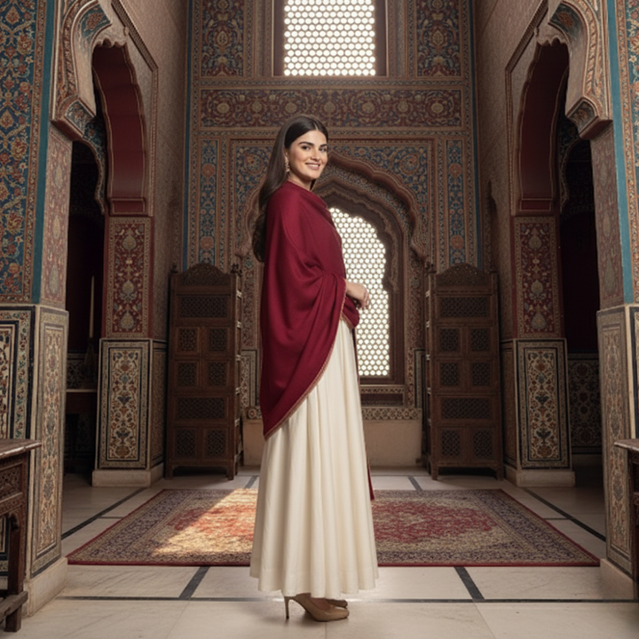 Indian Kingri Pashmina Shawl Embroidered - Maroon
