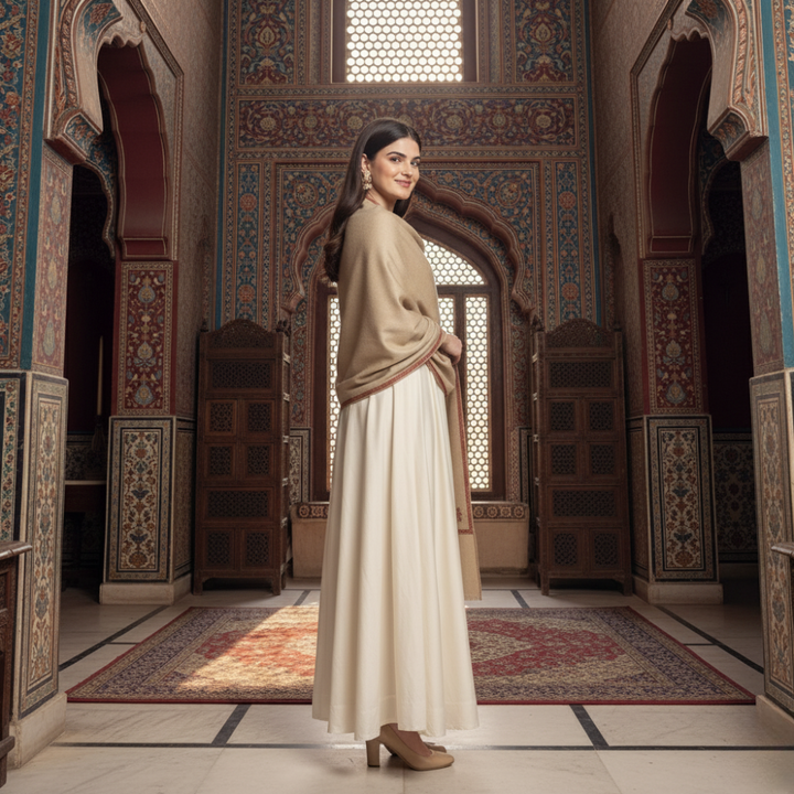 Indian Kingri Pashmina Shawl Embroidered - Tan