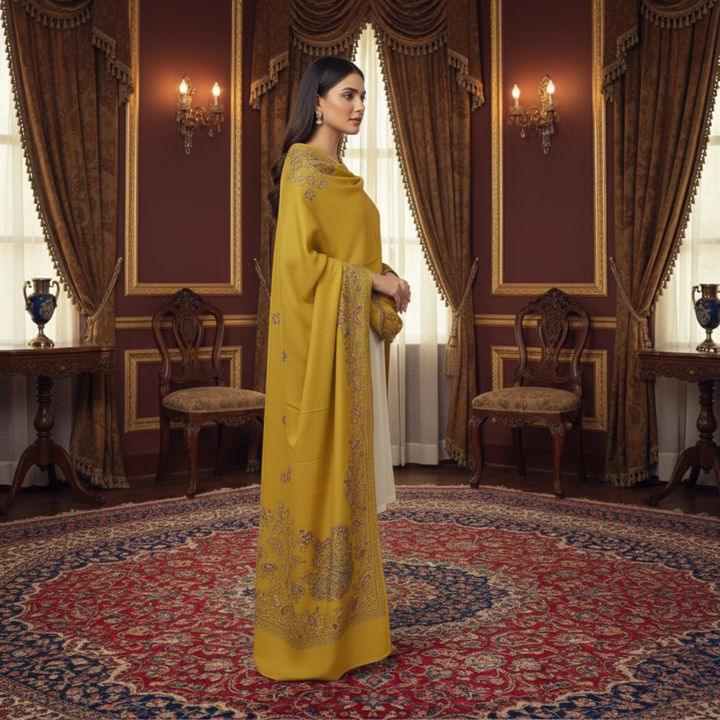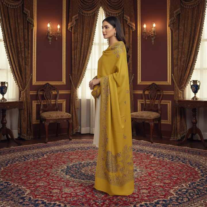 Mughal Charm Kingri Embroidered Shawl - Mustard