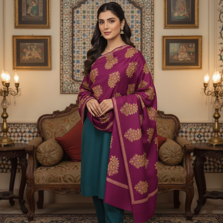 Naqsh Pashmina Shawl - Hot Pink