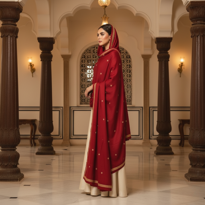 Traditional Kashmiri Embroidered Pashmina Shawl - Ruby